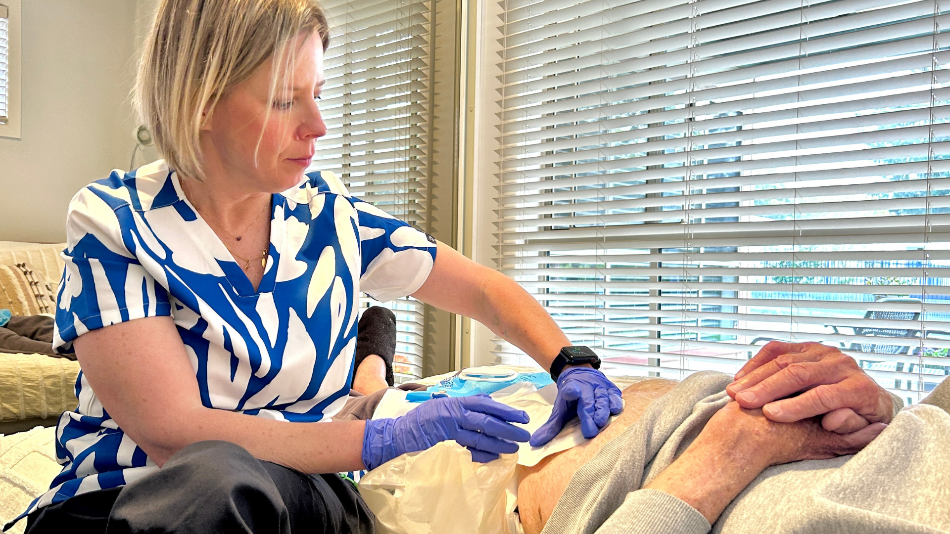 “When our mum had emergency surgery and came home with a stoma, we were frightened and overwhelmed. Kelly made a terrifying time feel manageable. Her compassion and expertise gave Mum the confidence to care for herself and gave our family hope. We couldn’t have done it without her.”